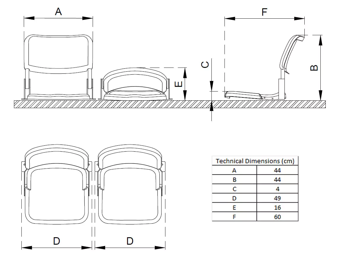 Teleskobik mekanizması ile alandan tasarruf sağlayan bu tribün koltuğu, hem açık hem de kapalı mekanlar için uygundur.