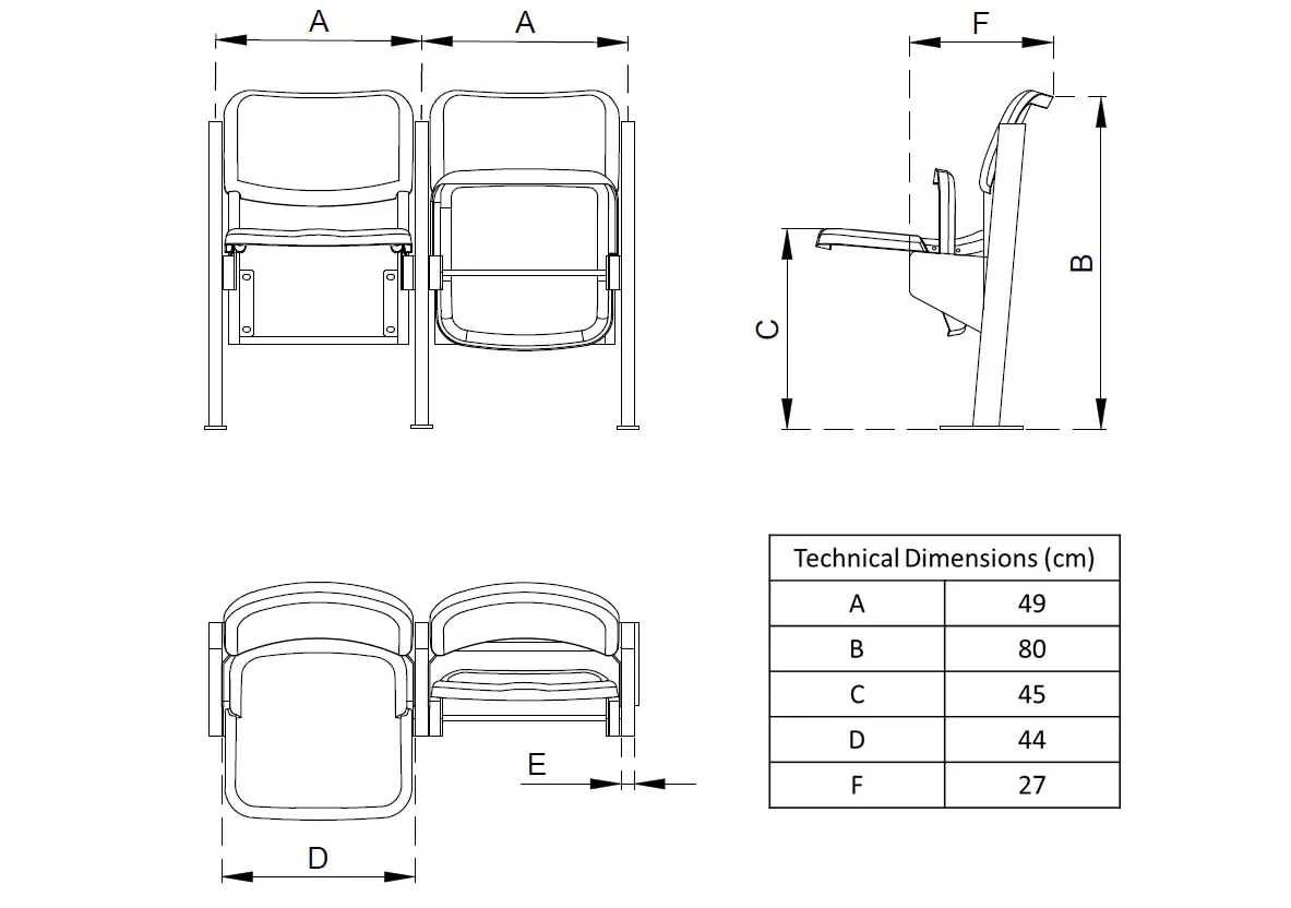 Estetik tasarımı ve otomatik kapanma mekanizmasıyla bu katlanır tribün koltuğu, yer tasarrufu sağlar. UV dayanıklı malzemesiyle uzun ömürlüdür.